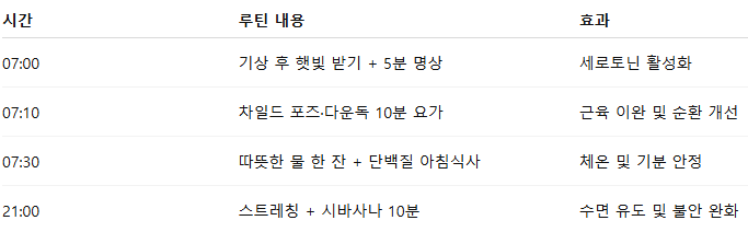 이 루틴은 신체·정신·리듬의 밸런스를 맞추는 구조입니다.